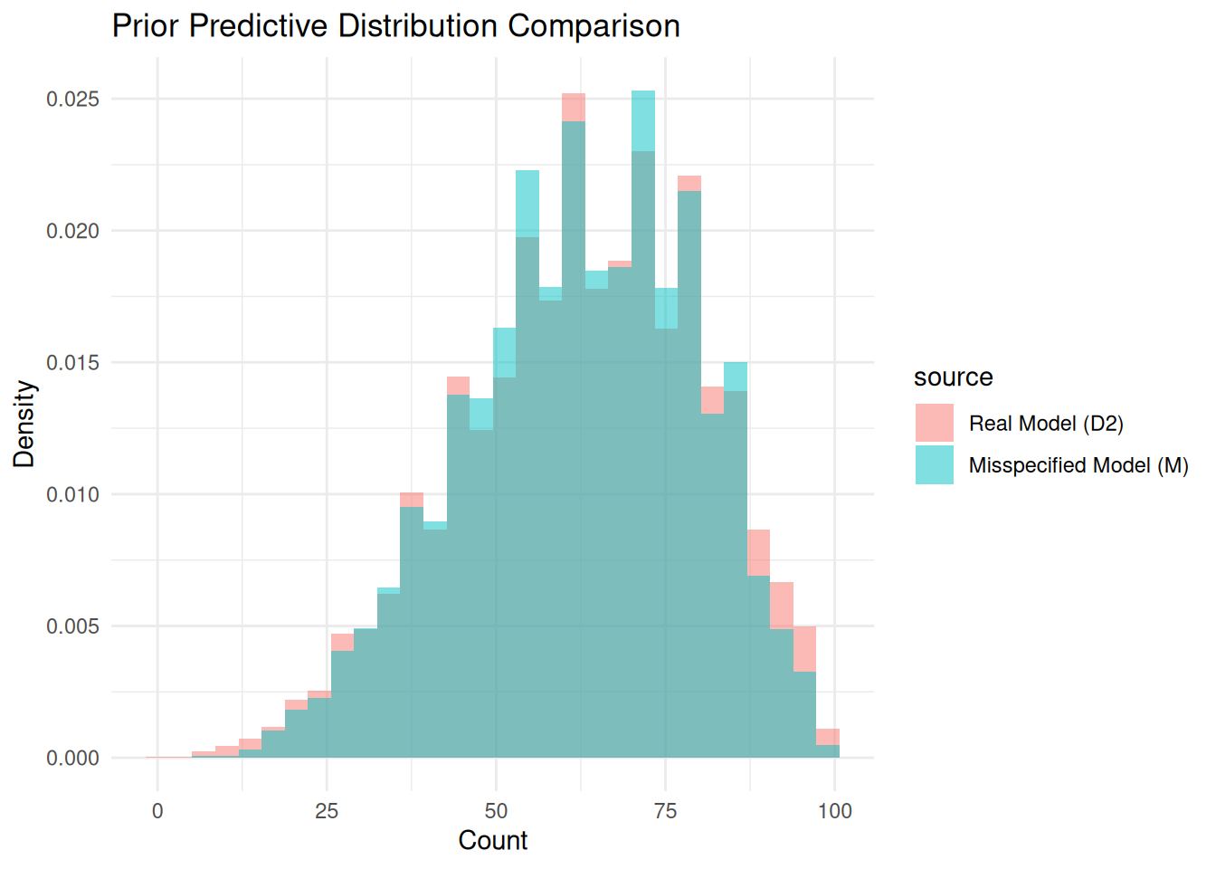 This project asks: if two models have nearly the same prior predictive behavior, how much can mild structural misspecification still change posterior predictions?
